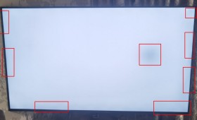- Присутствуют дефекты искажения распределения подсветки LED матрицы в виде «Мура», при отображении изображения разного спектра (белый, серый, красный, зеленый, синий).